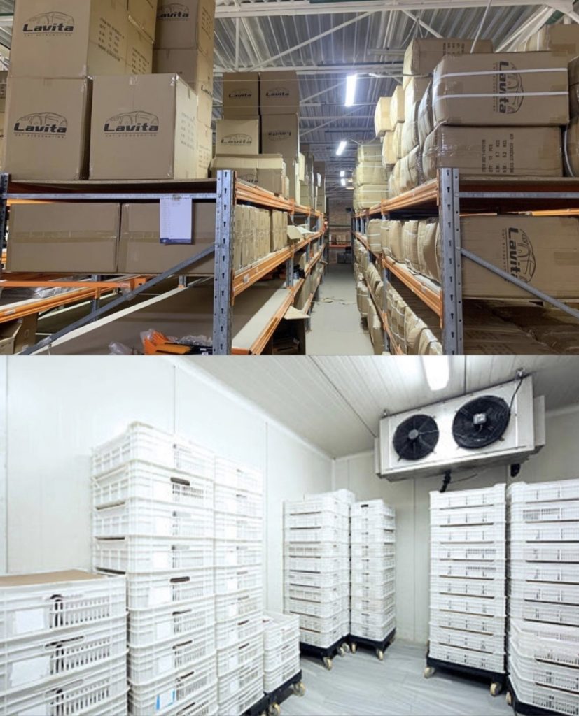 Складская инфраструктура компании выстроена в соответствии с внутренними процедурами, основанными на принципах HACCP и рекомендациях ISO 22000, что обеспечивает контроль качества и сохранность продукции на всех этапах хранения.